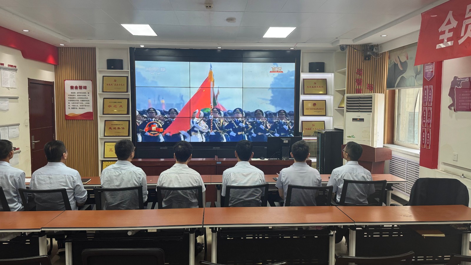 歷史燭照未來,精神永續(xù)傳承。為深切緬懷在抗日戰(zhàn)爭中英勇獻(xiàn)身的革命先烈,大力弘揚偉大的抗戰(zhàn)精神,引導(dǎo)全體黨員、職工銘記光輝歷史、堅定理想信念、強化責(zé)任擔(dān)當(dāng),9月3日,機(jī)運工區(qū)黨支部組織開展了“銘記歷史偉業(yè),傳承紅色基因”主題黨日活動,組織全體黨員集中觀看紀(jì)念中國人民抗日戰(zhàn)爭暨世界反法西斯戰(zhàn)爭勝利80周年閱兵儀式現(xiàn)場直播。上午九時整,機(jī)運工區(qū)全體黨懷著無比崇敬與激動的心情,目光齊聚屏幕。伴隨著激昂雄壯的國歌奏響,鮮艷的五星紅旗在天安門廣場冉冉升起,大家心潮澎湃,肅然起敬。隨后,規(guī)模宏大、氣勢磅礴的閱兵式正式開始。屏幕上,一個個整齊劃一、威武雄壯的徒步方隊,邁著鏗鏘有力、撼人心魄的步伐走過檢閱臺,堅毅的眼神、挺拔的身姿,充分展現(xiàn)了新時代軍人聽黨指揮的忠誠品格和能打勝仗的過硬本領(lǐng);一列列代表著國家科技實力與國防現(xiàn)代化建設(shè)最新成果的裝備方隊,鐵流滾滾,氣勢如虹,尖端武器依次亮相,彰顯了捍衛(wèi)國家主權(quán)、安全、發(fā)展利益的堅定決心與強大能力;雄鷹呼嘯,劃破長空,戰(zhàn)機(jī)編隊以精準(zhǔn)的隊形和磅礴的氣勢接受檢閱,描繪出壯美的藍(lán)天畫卷,宣示著捍衛(wèi)國家領(lǐng)空安全的鋼鐵意志。整個閱兵過程,秩序井然、威武雄壯、氣勢恢宏,生動詮釋了人民軍隊“聽黨指揮、能打勝仗、作風(fēng)優(yōu)良”的強軍目標(biāo),全方位展示了在黨的堅強領(lǐng)導(dǎo)下,國家日益強大的綜合國力和維護(hù)世界和平的堅定信念。屏幕前,黨員們?nèi)褙炞?,無不被這震撼人心的場面所感染,民族自豪感與榮譽感油然而生,現(xiàn)場不時響起由衷的贊嘆和熱烈的掌聲。通過本次“銘記歷史偉業(yè),傳承紅色基因”主題黨日活動,機(jī)運工區(qū)黨支部全體黨員經(jīng)歷了一次深刻的精神淬煉與思想升華。大家的歷史使命感、民族自豪感、崗位責(zé)任感得到顯著增強,紛紛表示以更加飽滿昂揚的精神狀態(tài)、更加求真務(wù)實的工作作風(fēng)、更加開拓創(chuàng)新的進(jìn)取意識,恪盡職守,銳意進(jìn)取,全力以赴保障原煤運輸安全高效,為工區(qū)及公司的持續(xù)高質(zhì)量發(fā)展貢獻(xiàn)全部力量!